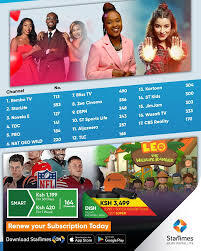 • For antenna (DTT): packages like “Nyota”, “Mambo”, “Uhuru”