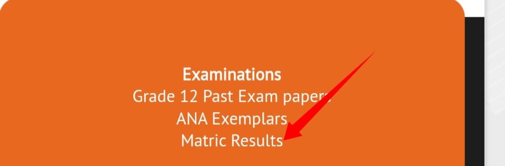 • Navigate to footer section and click Matric Result link found under Examinations as shown in image Isolezwe Matric Results 1 of 1